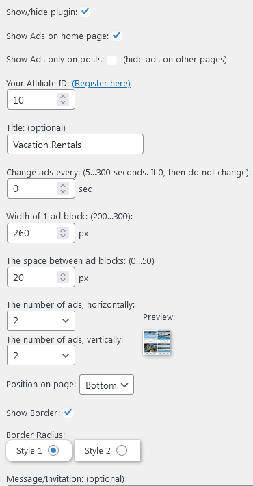 "Affiliate Ads for Vacation Rentals" plugin: